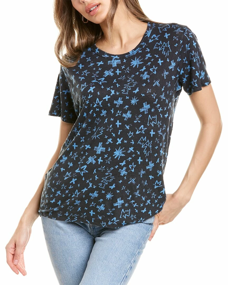 - Aria Linen T-Shirt in cornflower with crewneck and allover print
