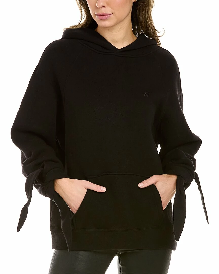 - Emy Hoodie in noir with attached hood and tie cuffs