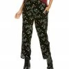 - Design details: metallic trim, dual front angled pockets, dual back welt pockets, roll-up cuffs with contrast striping, belt loops