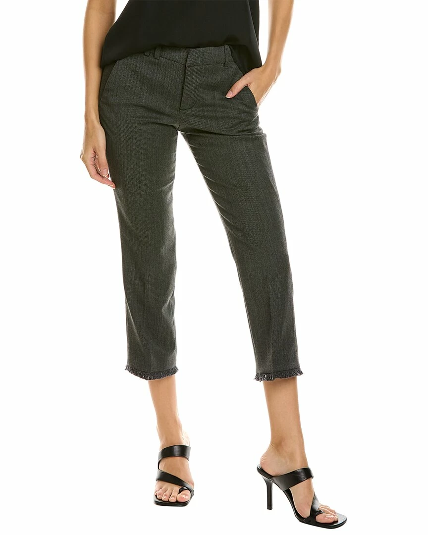 - Posh Frances Wool-Blend Pant in anthracite with belt loops, four-pocket styling, and frayed hem