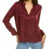 - Tink Top in red with split neckline, shirring details and barrel cuffs