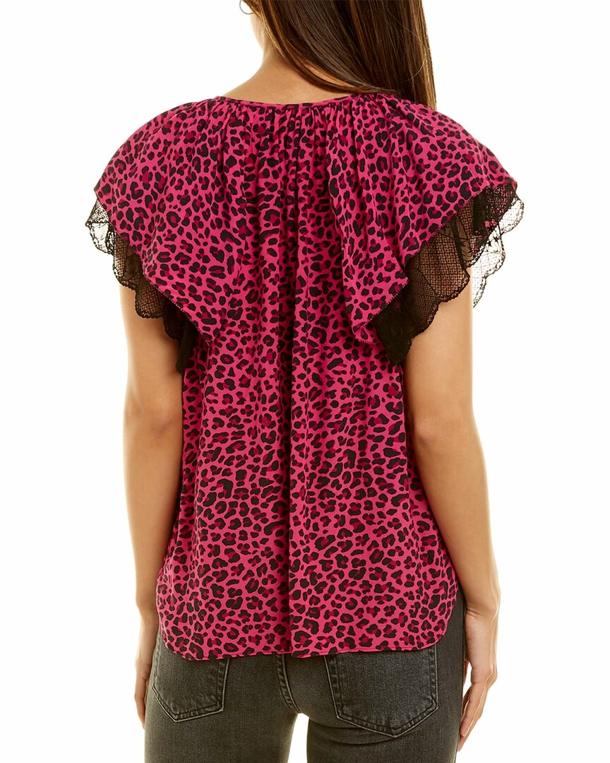 - Tinker Top in framboise with ruffle sleeves and scalloped lace trim