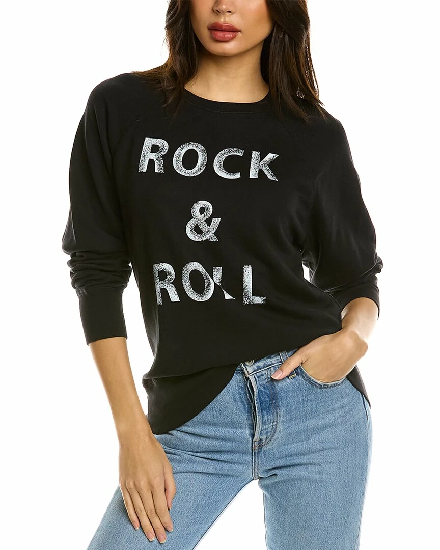 - Upper Rock & Roll Decal Sweatshirt in black with graphic front, raglan sleeves and ribbed trim